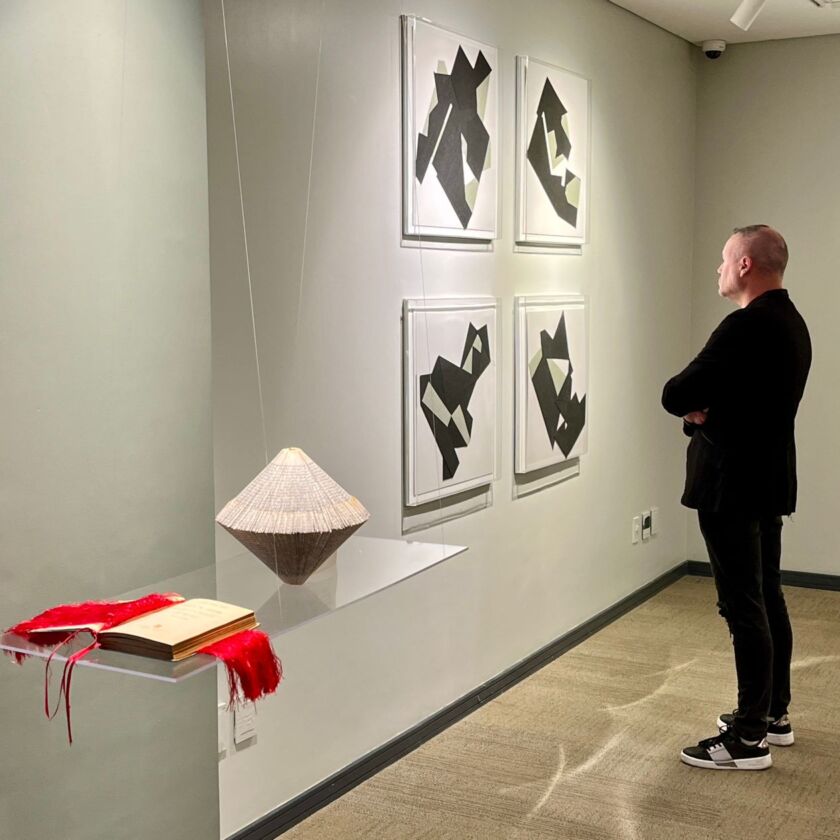 Desde entonces, Ligia mira con mayor precisión las caligrafías y las refleja en diversas instalaciones, obras de arte en 2D , 3D y recurriendo a papeles y libros que corta y dobla casi obsesivamente. En el silencio de su casa/estudio, profundas reflexiones llenan su existencia. “Esta muestra tiene como columna vertebral un diccionario y libros plegados una y mil veces, convertidos en esculturas. La muestra también incluye objetos realizados en papel y tela. Ligia D’ Andrea es una artista que reflexiona con la gráfica de las palabras teniendo en cuenta la belleza de la tipografía y la trascendencia de los contenidos en los soportes con los que trabaja; el diccionario, escritos de Homero, Platón, Humboldt, García Lorca y otros importantes escritos de carácter universal”, asegura Cecilia Bayá, curadora de este proyecto.
