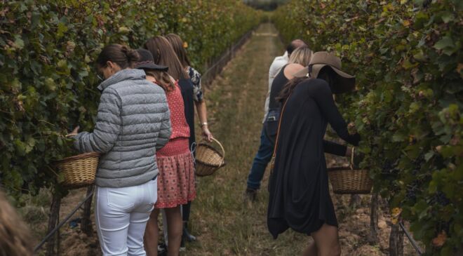 La cosecha también fue parte de la experiencia de Casa Real para sus invitados. Al llegar a la cuarta estación de los viñedos, las canastas estuvieron listas para la recolección de la uva. La destilería, por su lado, encantó por su sala de producción con alambiques altamente tecnificados traídos desde Cognac, Francia; los asistentes pudieron conocer de cerca el proceso de elaboración del destilado emblema de Bolivia.