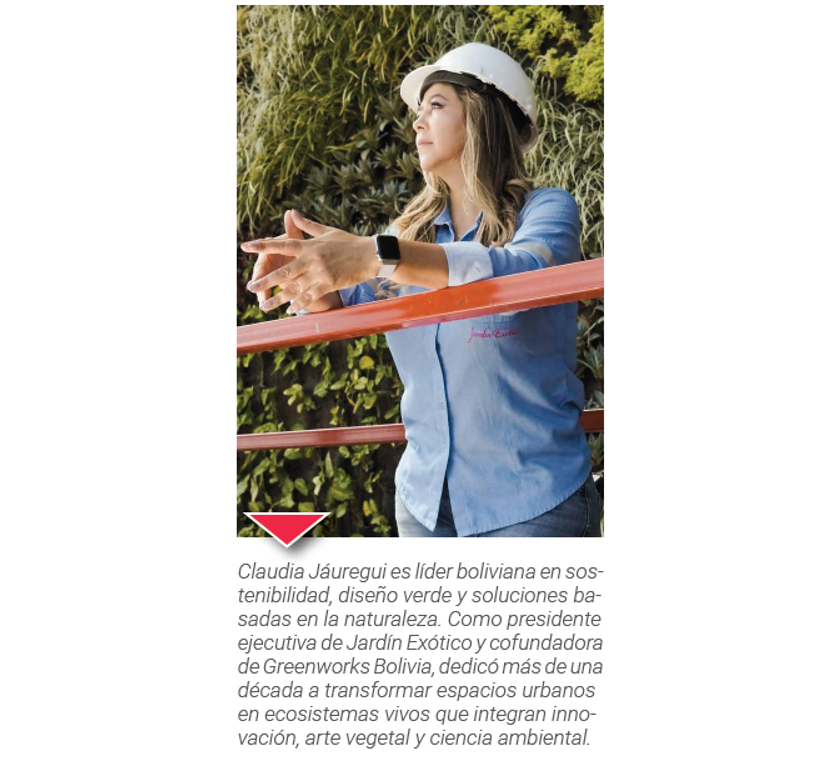 En Bolivia, una empresa que encarna esta visión es Jardín Exótico, que ha implementado jardines verticales y techos verdes que hoy transforman el paisaje urbano del país. Uno de sus proyectos más emblemáticos es el Jardín Vertical de Intower, en el Urubó: más de 450 m2 de vegetación viva que purifican el aire, reducen la temperatura y se convirtieron en el tercer jardín vertical más grande de Latinoamérica. La obra fue distinguida por su integración armónica con el entorno paisajístico, demostrando que incluso una fachada puede convertirse en un pulmón verde para la ciudad.