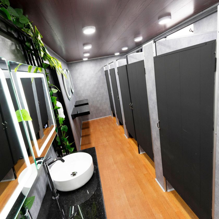 El novedoso servicio incluye dos tipos de sanitarios, tanto para damas, como para varones; el primero, está compuesto por seis inodoros, dos lavamanos y un área de peinado o tocador, mientras que el segundo, destinado para los hombres, contiene tres inodoros, ocho urinarios y dos lavamanos.