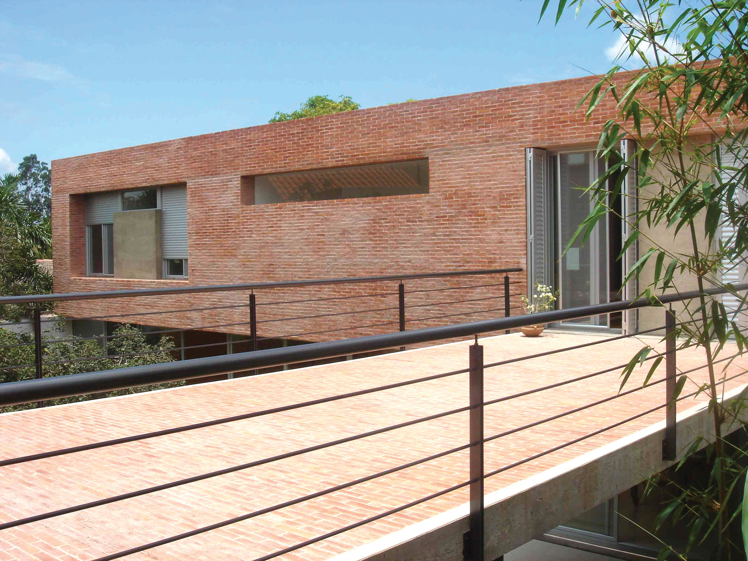 Y es que podríamos describir el proyecto haciendo un recorrido desde imágenes y planos, argumentar que se desarrolla en una planta en forma de I o doble T, que prima lo privado en el nivel superior por sobre lo social en el nivel del jardín. Decir también que es una vivienda austera de ladrillo visto, que se vuelca al interior manteniendo una sobria y esbelta fachada hacia la calle, que tiene allí solo dos volúmenes que se conectan en el vacío a casi triple altura del ingreso. Podríamos hablar de su galería, puentes, sus dobles alturas, de la limpieza de su salón amplio y sin columnas aparentes, describir su exótico jardín de helechos y esto no sería poco, pues es un bello proyecto hecho con buen oficio.