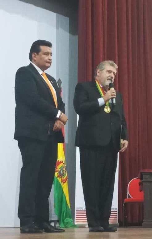 La condecoración tuvo lugar el 15 de enero, en el Teatro Mariscal de la ciudad de Sucre, durante la plenaria de clausura del XXV Congreso Nacional. Le entrega estuvo a cargo del presidente del CAB, Manolo Joaquín Maita Espada.
