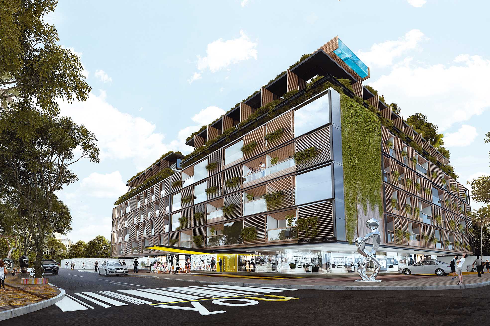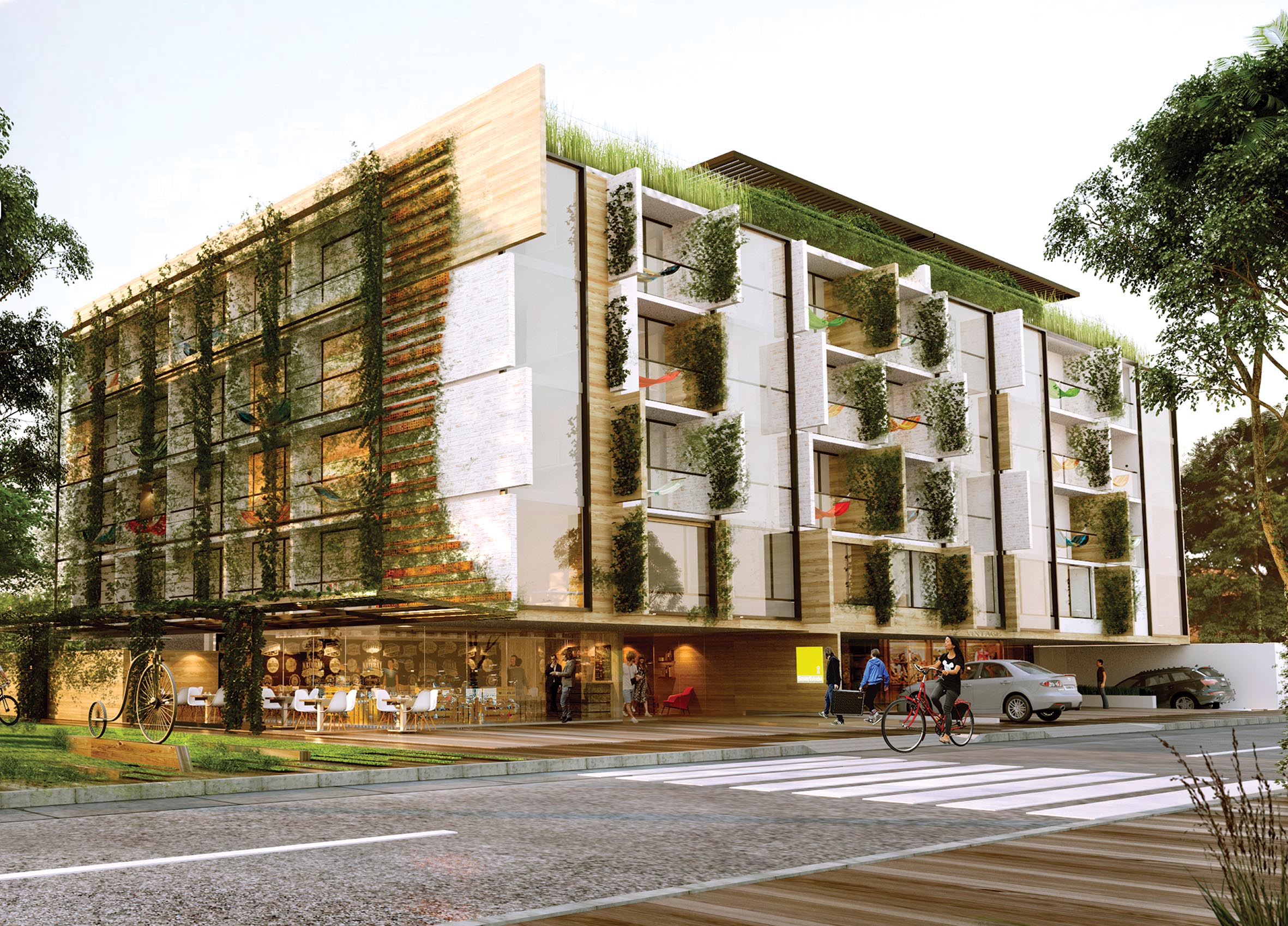 Este proyecto se construye en Equipetrol en un terreno de 941 metros cuadrados, tendrá cinco niveles más un subsuelo y contará con 54 apartamentos de diferentes tipologías. En la terraza del último nivel se ha diseñado una huerta, con una superficie importante, en la que los usuarios podrán sembrar diferentes especies de verduras y hortalizas. para su propio consumo.