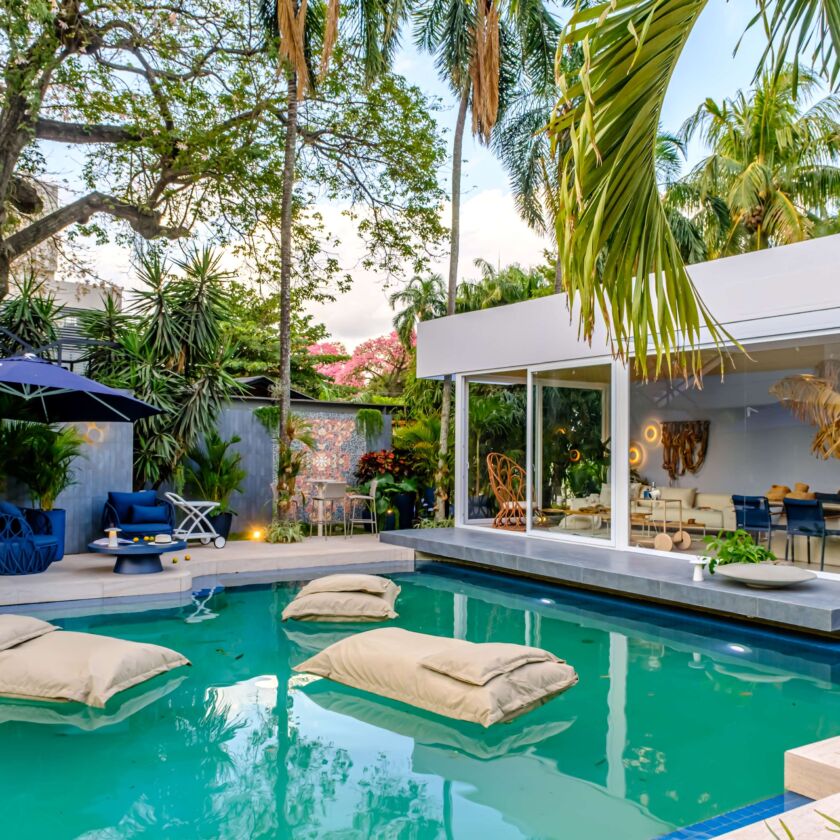 Su idea fue transformar el área de la piscina manteniendo la esencia local, con el aporte de líneas rectas de diseño moderno, teniendo como base la sustentabilidad y la ecología.