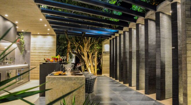 El arquitecto Oscar Anglarill fue el encargado de diseñar y dar forma a este espacio, donde Cemento Camba fue la inspiración. El profesional intervino la churrasquera de CASACOR, empleando un estilo industrial donde se aplica el concreto como parte de la estructura y decoración, lo cual fue posible gracias a la manejabilidad del producto.