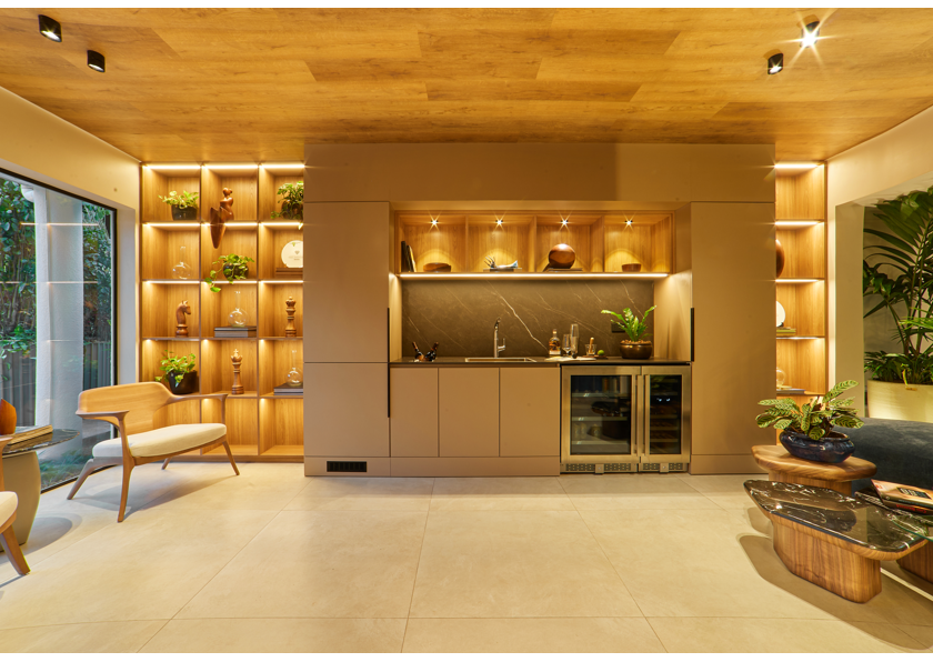 Tramontina Lounge abarca una superficie de 70 metros cuadrados, compuesto por dos ambientes que fusionan el concepto de Lounge/Bar con la cocina principal de la casa.