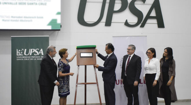 La UPSA entregó la plaqueta conmemorativa al Campus Univalle Sede Santa Cruz