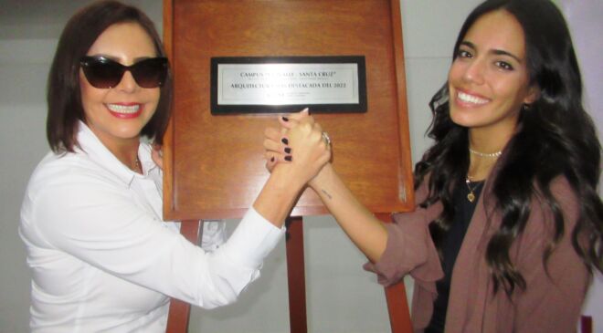 Marisabel Abularach Salek y Mariel Handal Abularach derribaron mitos relacionados al trabajo en familia, al acceder a la distinción con su obra Campus Univalle Santa Cruz. “Si se puede trabajar con la mamá. Lo bonito es que nos complementamos bastante bien, ella tiene la experiencia, yo le traje toda la innovación, y hacemos buen equipo”, dijo la segunda.