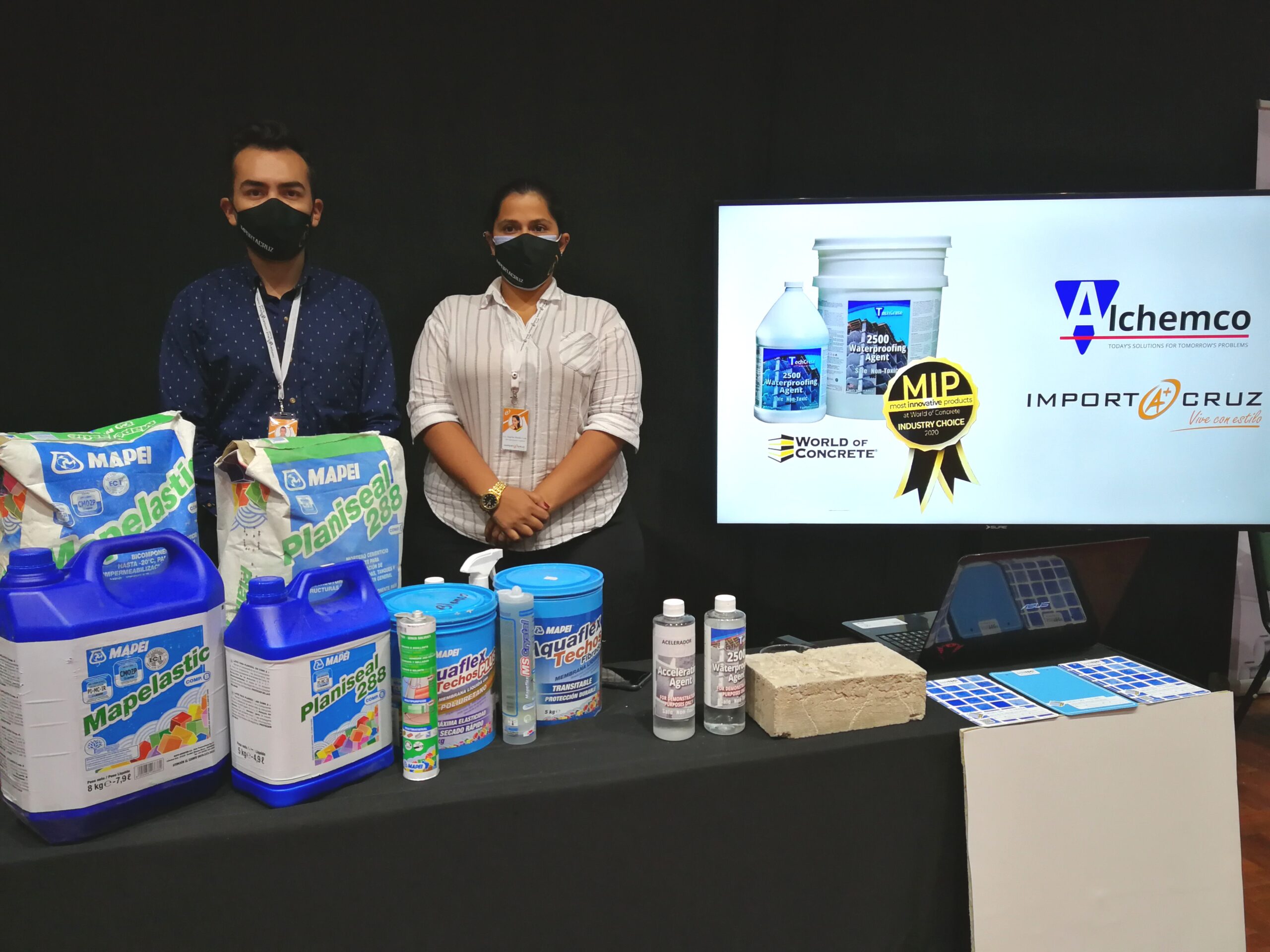 Importacruz exhibe los productos más innovadores en sistemas de impermeabilización, fachadas ventiladas, pisos técnicos y porcelanatos, como de las líneas Mapei, Aichemco, Sintec y otros que cuentan con garantía de más de 10 años. A decir de Boris Pardo, ejecutivo de la empresa, Techcrete es un producto de alta tecnología para impermeabilizaciones de estructuras de hormigón, parqueos, tanques de agua, sótanos, piscinas y mucho más. El producto ganó la categoría del más innovador en la feria del Mundo del Concreto 2020, efectuado en Las Vegas.