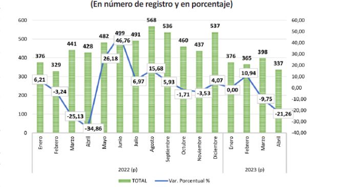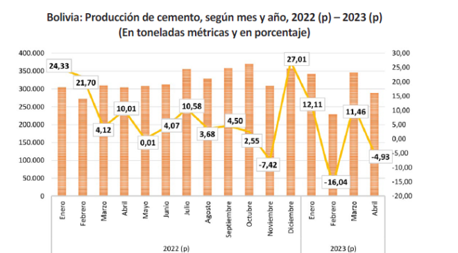 Marzo y abril de 2023 mostraron decrecimientos de 9,75% y 21,26%, respectivamente, en comparación con los mismos meses de la gestión 2022.