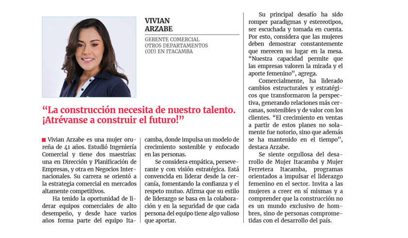 A decir de Vivian Arzabe, gerente comercial Otros Departamentos de Itacamba, la industria ha evolucionado enormemente y actualmente hay una mayor apertura a la innovación, a la sostenibilidad y a la inclusión. Las empresas del sector ya no se definen solo por su capacidad productiva, sino por su impacto en la sociedad y en las personas que la conforman.
