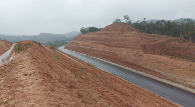 En obra, ya se tiene emplazado en dos lugares las plantas de producción de agregados y una planta de Asfalto. Se continúa trabajando en la LDDV de sectores puntuales por parte del equipo PR de la Supervisión, así como la elaboración de las carpetas de afectaciones. Se cuenta con siete frentes de trabajo de movimiento de tierras. Tiene un 26.5% de avance, su entrega está planificada para el 2023.
